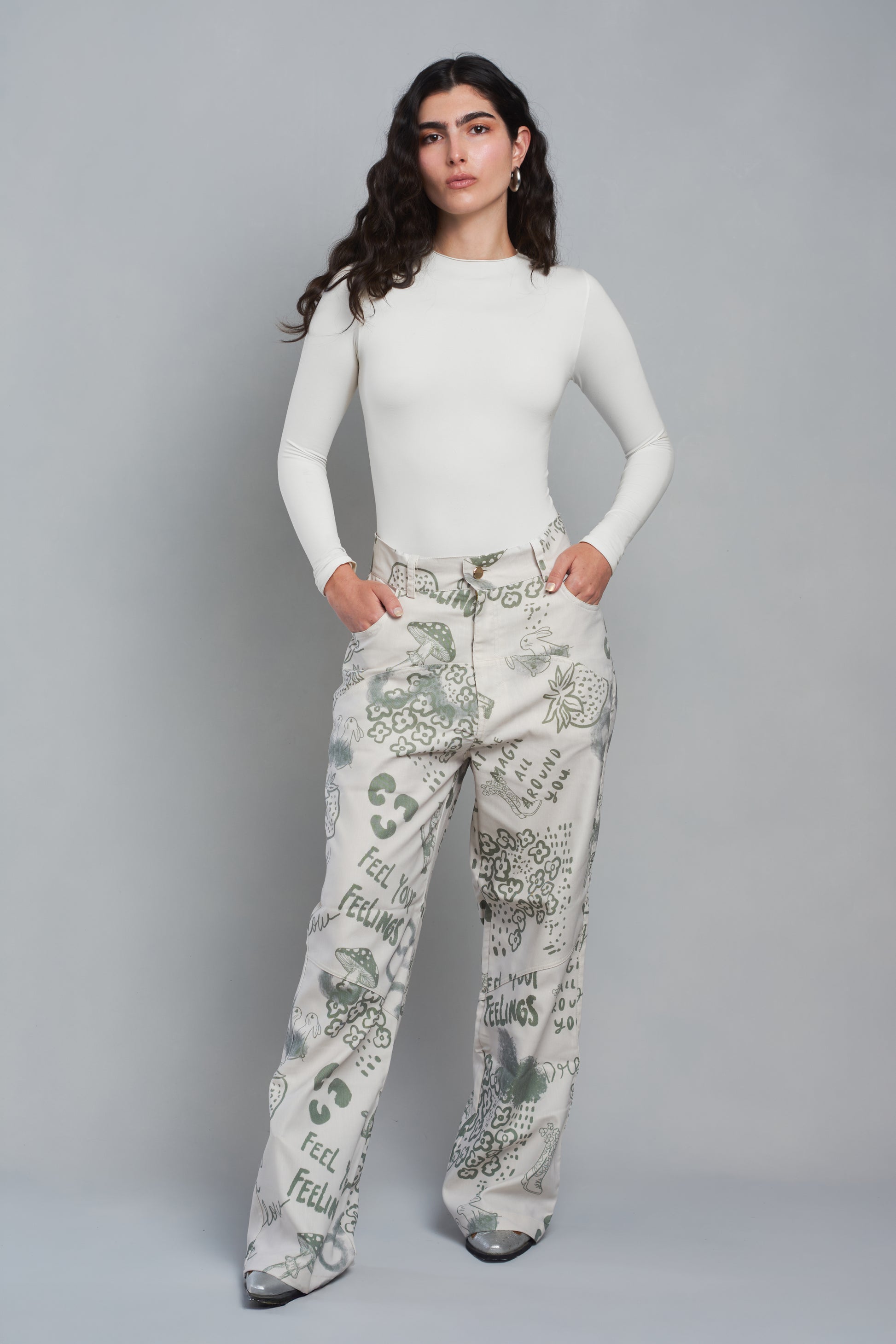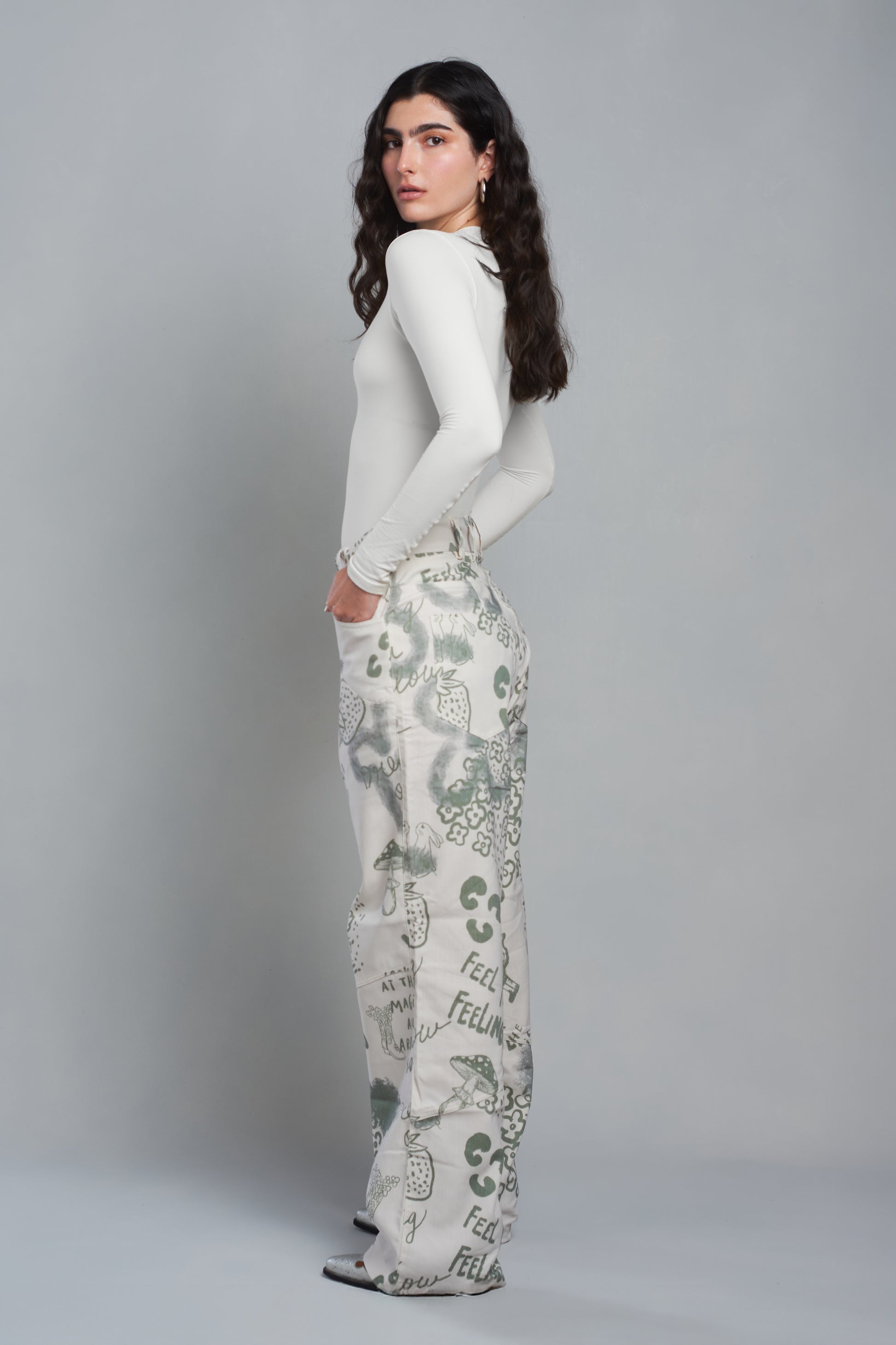 Completamente estampado con nuestro print GROW DREAMS. Tiene cremallera y pretina. Bolsillos amplios en la parte de atrás. Bota ancha.